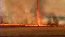 A tűztornádó gyakran a lángok között jelentkezik, azonban alkalmanként a tűz területe mellett is felléphet, szintén a tűzzel kapcsolatos heves, felfelé irányuló gázáramlás révén.