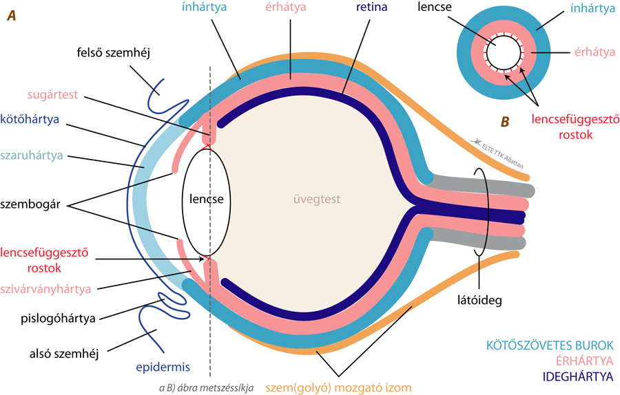A szem részei: